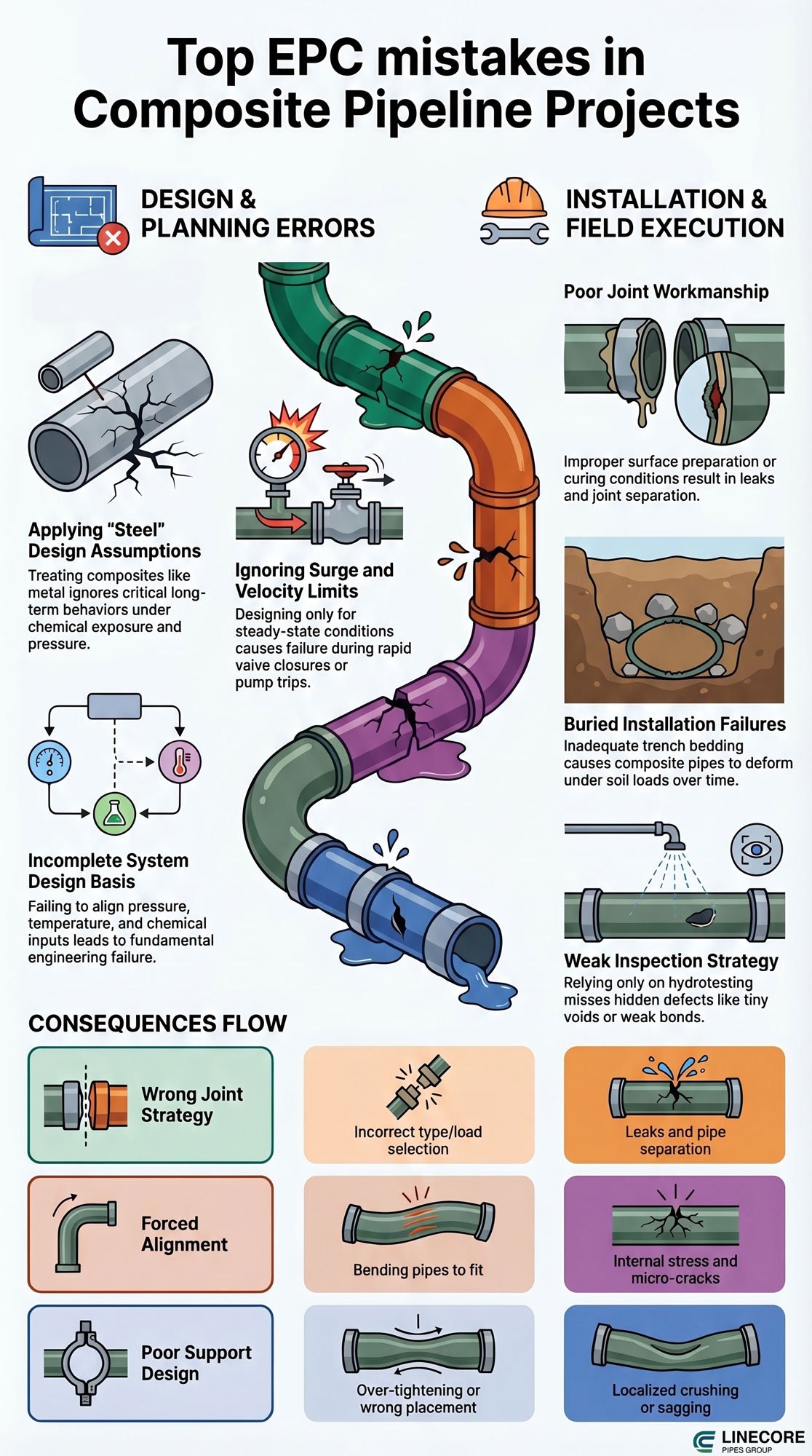 Top EPC mistakes in GRP pipeline projects infographic (source:Pipelinecoregroup.com)